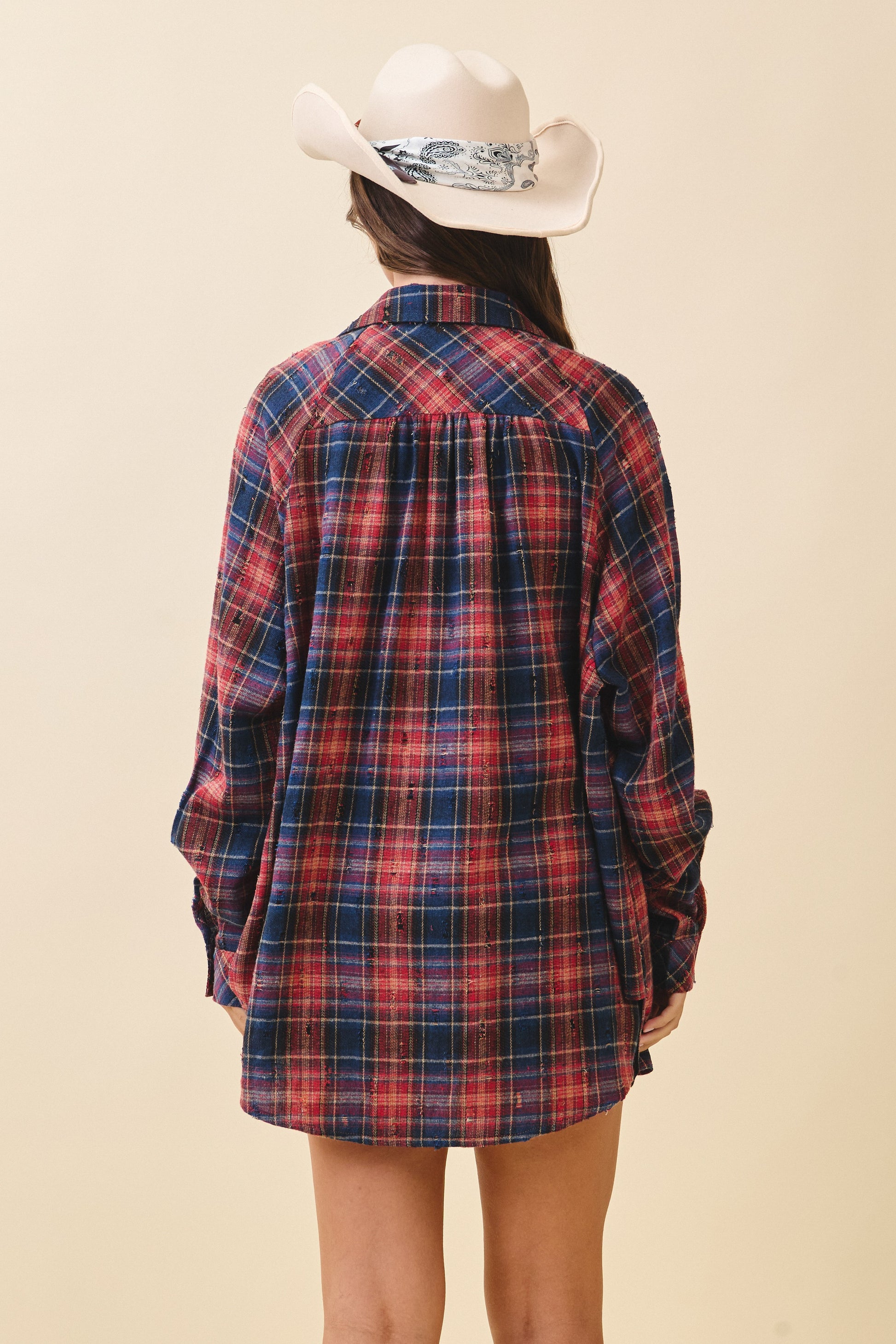 Made from soft and breathable brushed cotton flannel, this plaid button-down features raw-edge distressing for a perfectly worn-in look.