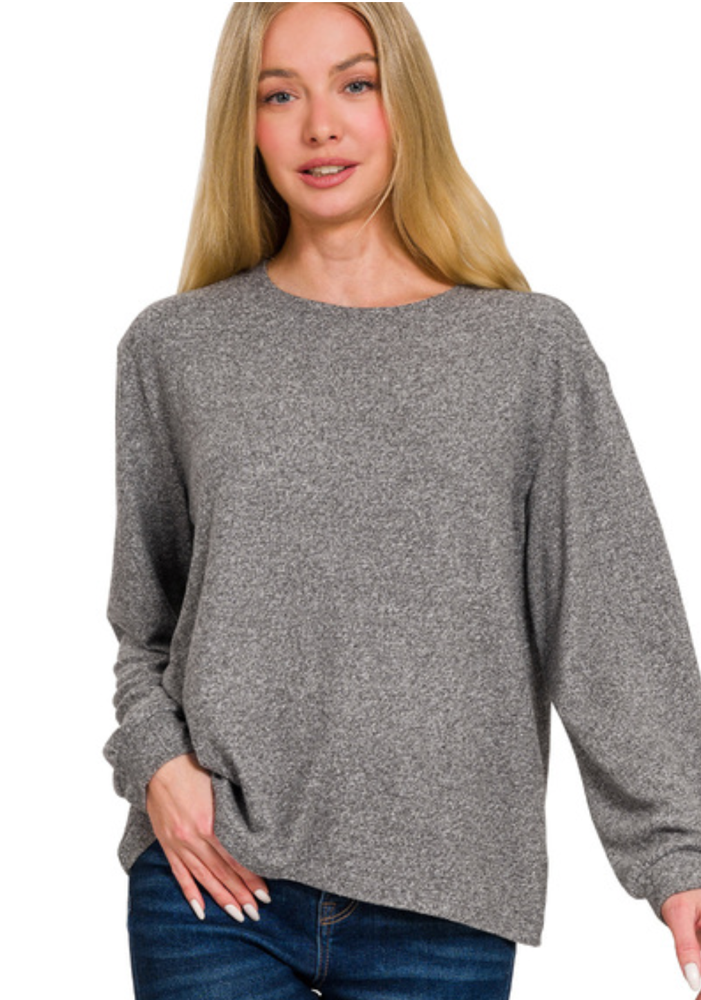 SOFT MELANGE HACCI ROUND NECK LONG SLEEVE TEE