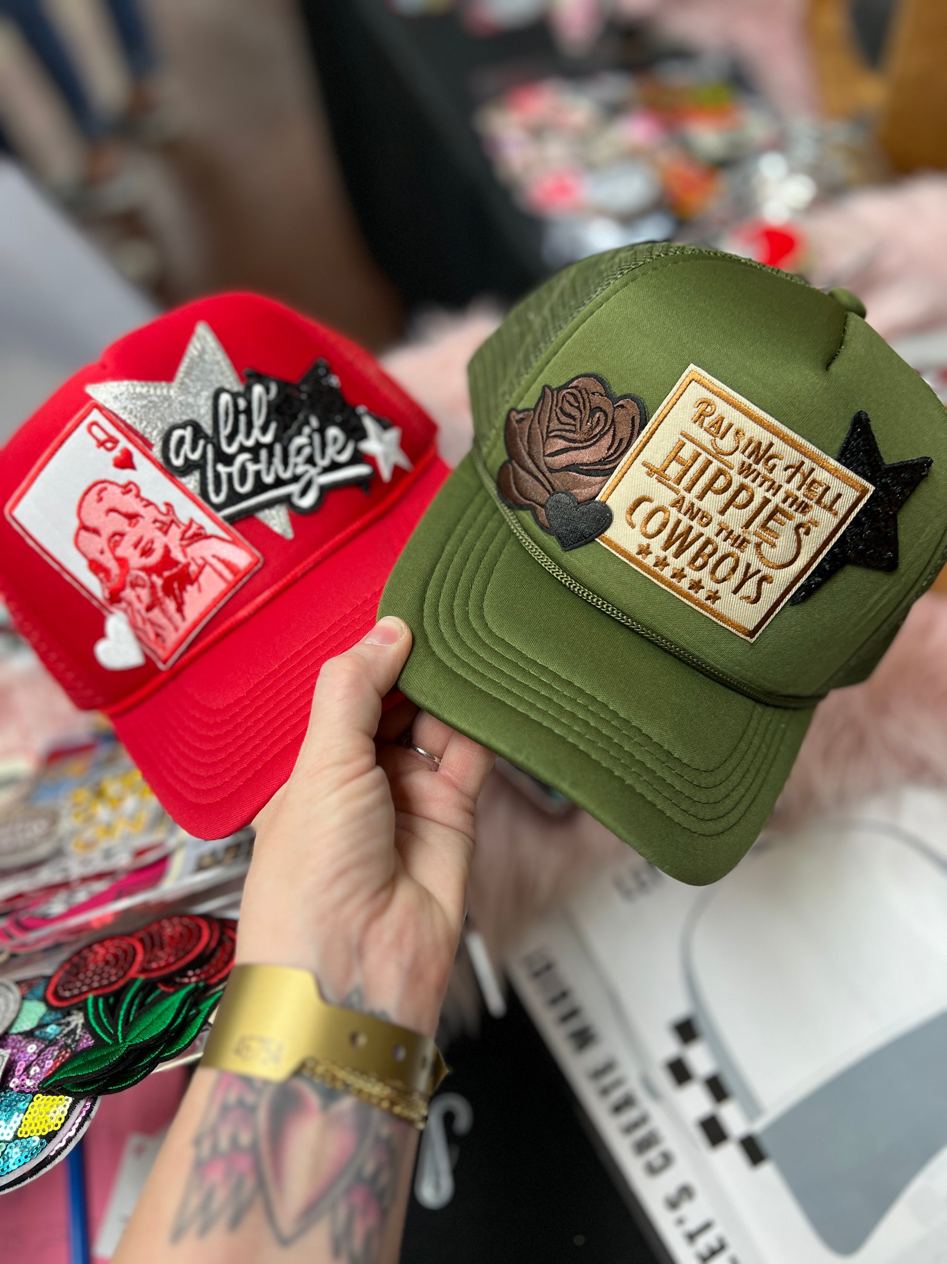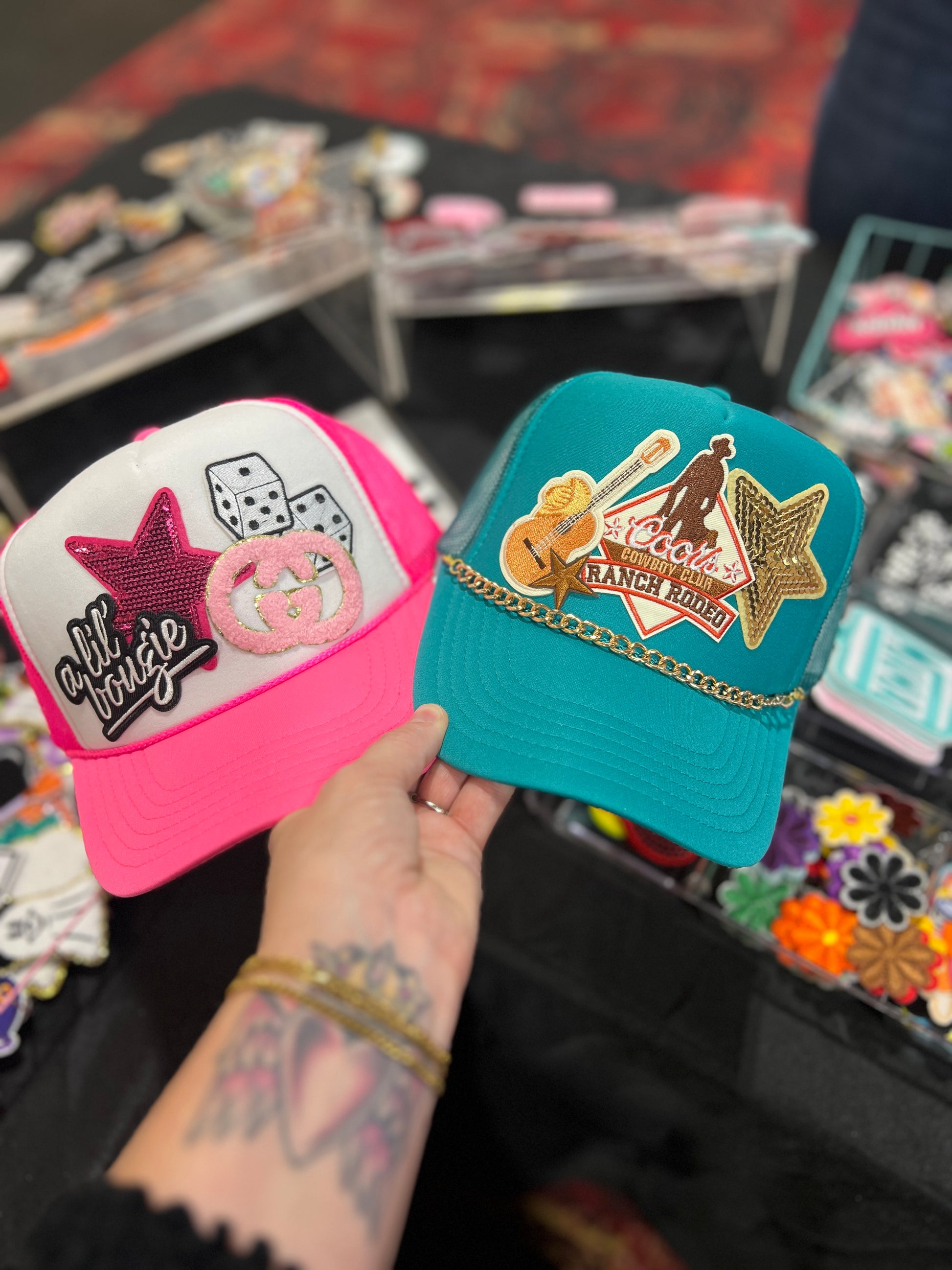 We supply a wide range of Patches that your guests will be able to pick to decorate their Custom One of a Kind Trucker Hat.