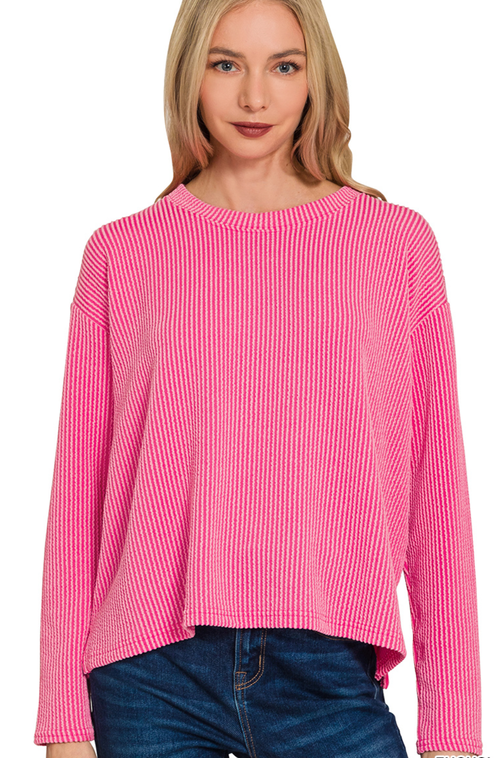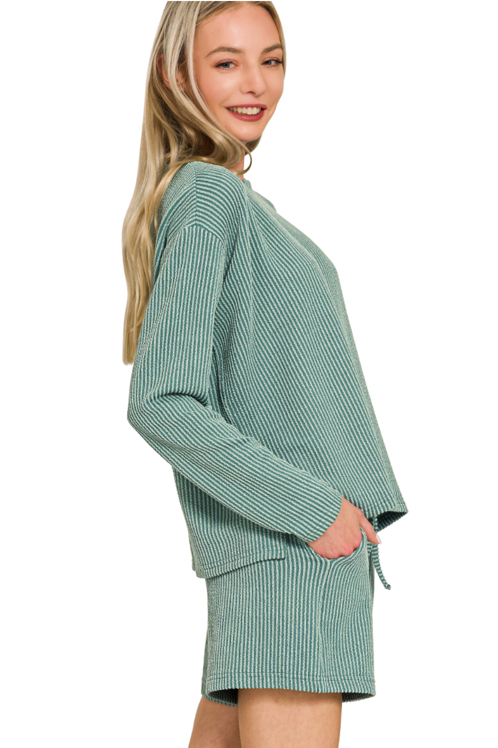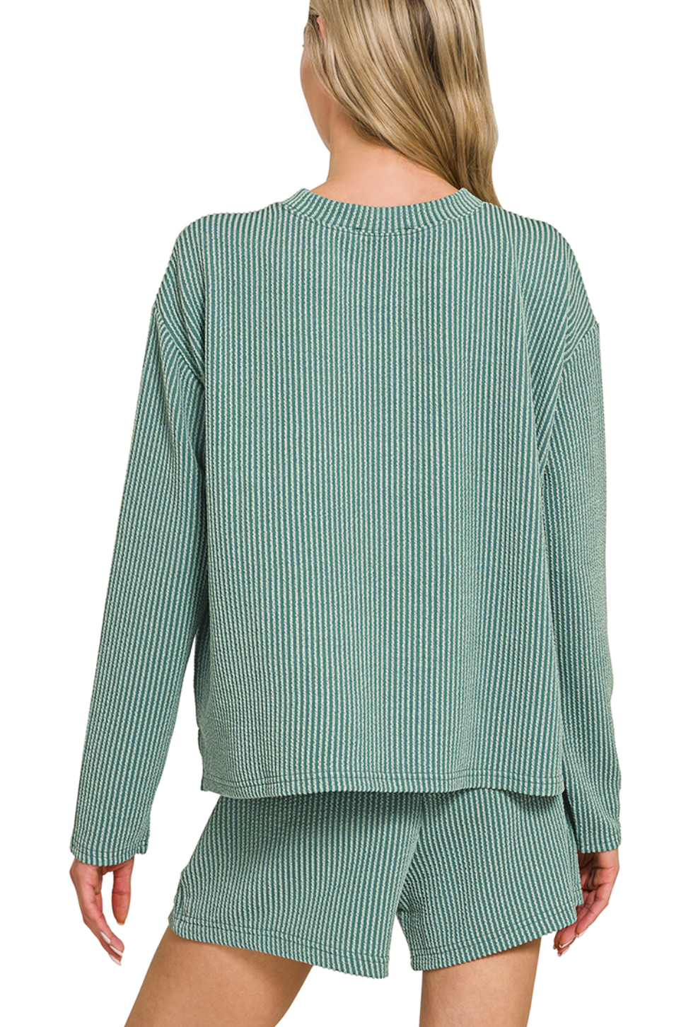 RAISED RIB LONG SLEEVE TEE & SHORTS SET